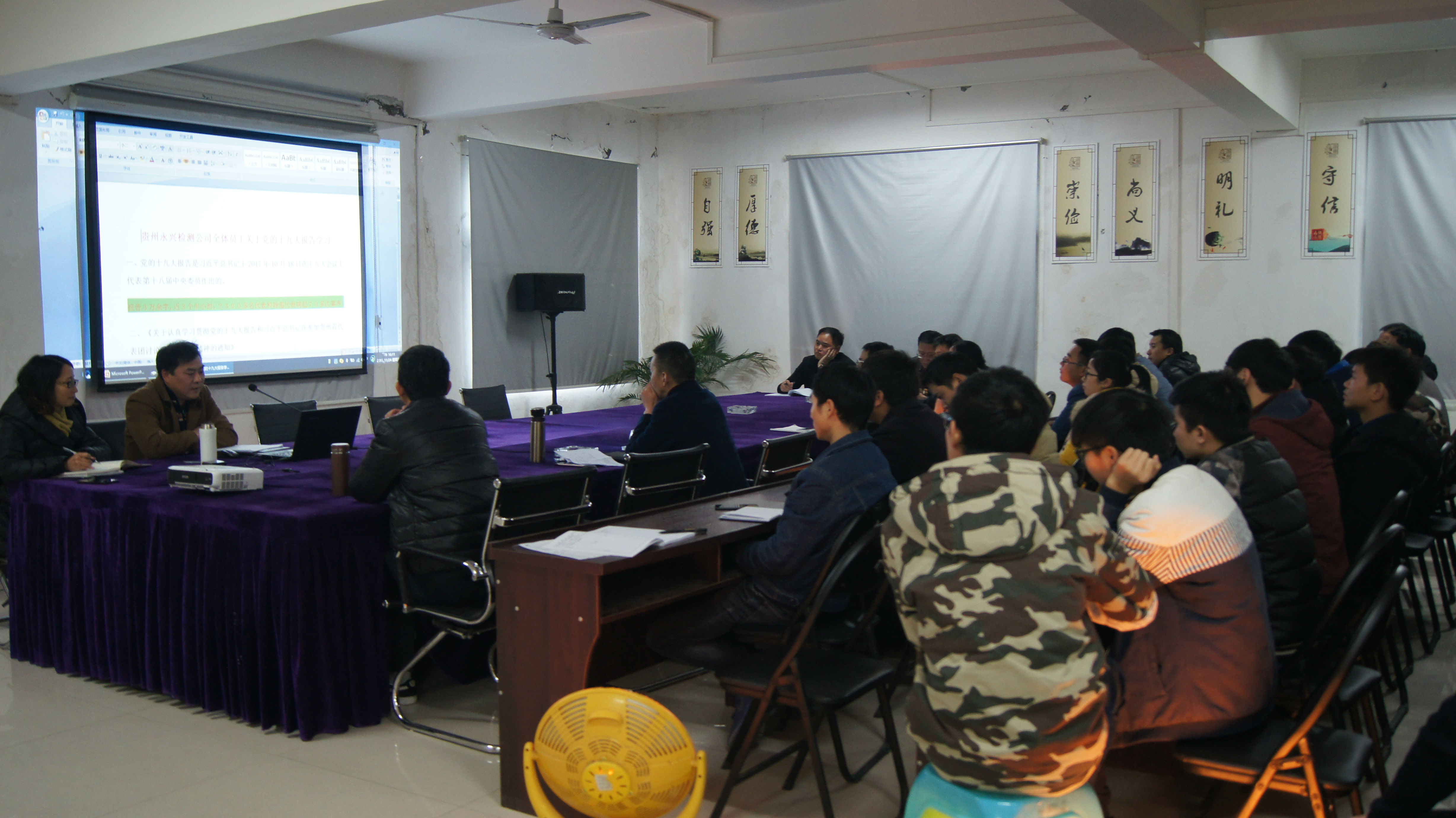为贯彻落实党的十九大会议精神,永兴党支部于2017年11月24日下午在公司三楼会议室组织公司本部全体员工召开了宣贯党十九大精神的会议。