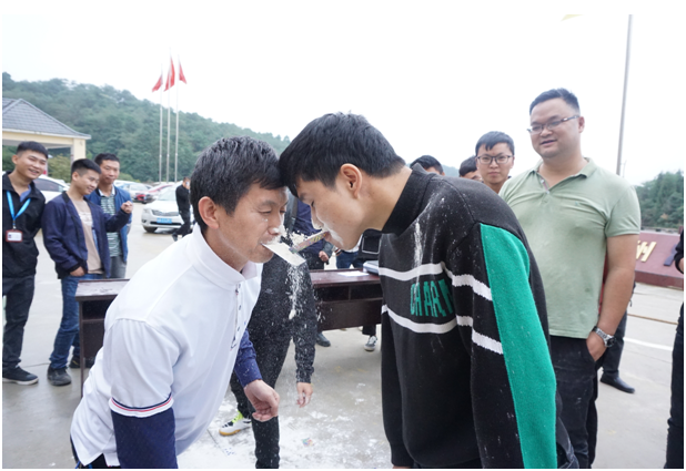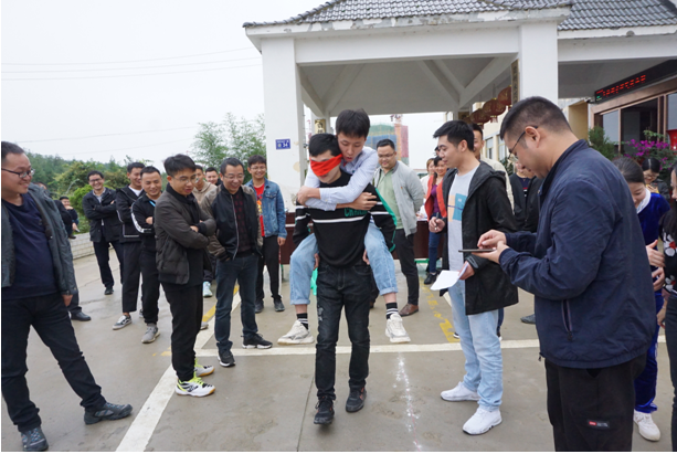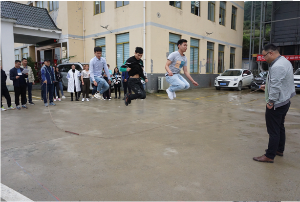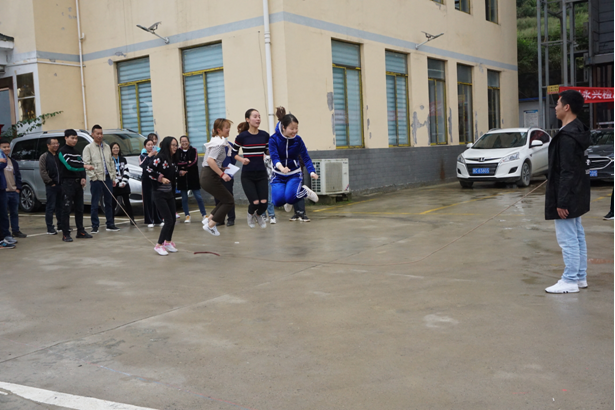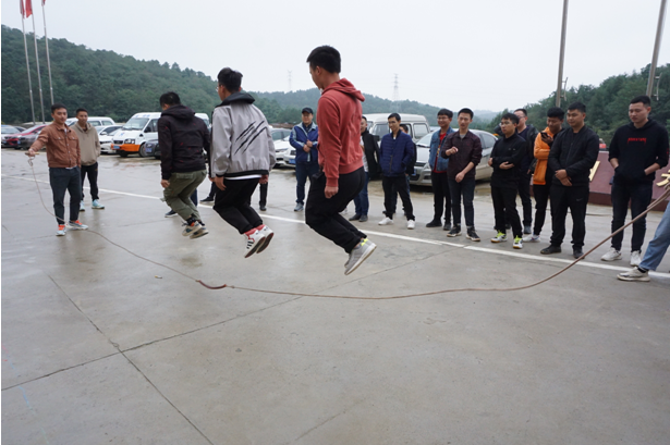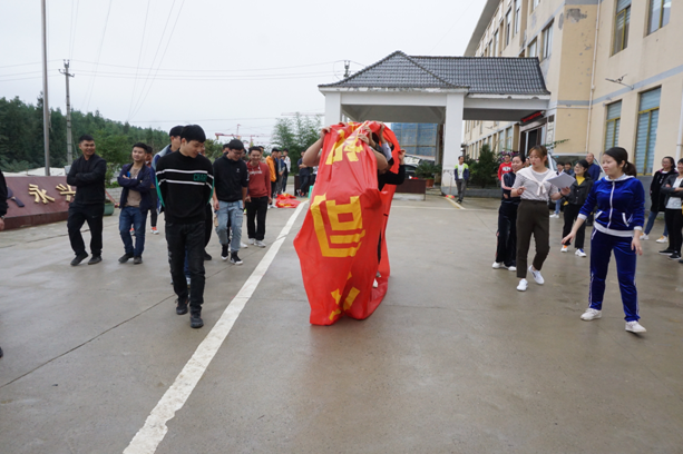 伴随着庄严肃穆的升旗仪式结束,文娱活动拉开帷幕,活动包括瞎子背瘸子、多人跳绳比赛、无敌风火轮、粉末登场、拔河比赛等项目。虽然天公不作美,但是并不影响队员们的发挥,活动过程充满一片欢声笑语,参赛队员们全神贯注、相互配合、默契十足,现场高潮迭起、气氛热烈。