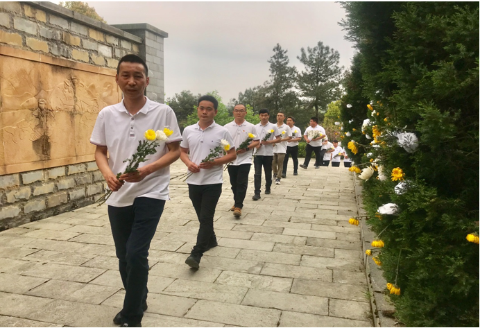 公司党员和积极分子共15人参加了此次活动,在庄严肃穆纪念碑前全体肃立,公司党政领导肖立波同志与退役军人孙御辉同志向烈士墓碑敬献花蓝,全体人员向百宜阻击战牺牲的红军烈士默哀一分钟以告慰先烈英灵。默哀结束后,支部委员肖立波同志宣读祭文,悼念为共产主义事业、为人民的解放和幸福英勇捐躯的各位英雄们,要求党员积极分子永远铭记英雄烈士的牺牲和奉献,继承和发扬革命先烈的光荣传统,贯彻落实党的十九届五中全会精神,加强学习,提高素质,要立足岗位,做好本职工作,充分发挥共产党员先锋模范作用。随后党员们重温入党誓词,并怀着无比崇敬的心情依次瞻仰烈士墓碑和献上手中的菊花。