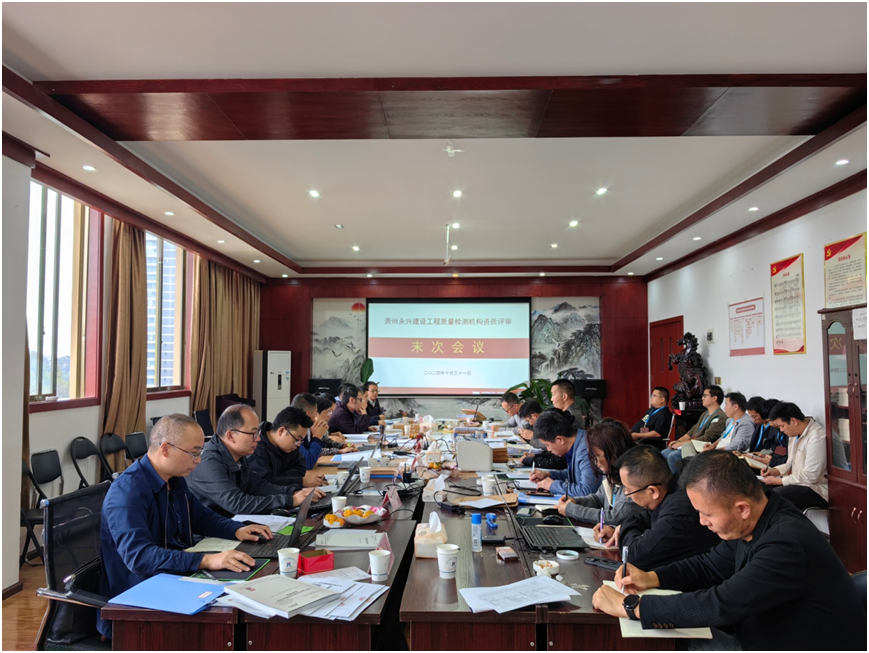2024年10月30日至31日,贵州省建设工程质量检测机构资质评审组十位专家对公司申报的“建设工程质量检测机构检测资质”进行了现场评审,本次评审涉及建筑材料及构配件、主体结构及装饰装修、钢结构、地基基础、建筑节能、建筑幕墙、市政工程材料、道路工程、桥梁及地下工程共九个专项。评审组专家对公司人员配置、设备配置、质量体系、环境设施、检测能力等方面进行了现场核查和考核,经过评审组专家两天的辛劳工作,公司的各项核查及考核项目均顺利通过。在总结会上评审组专家针对公司存在的不足提出了整改要求,评审结论为“整改后通过”,公司将会依据整改要求彻底整改,不断提升和完善不足之处,进一步提高公司的质量管理水平。